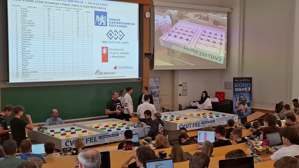 Dne 22. 4. 2026 jsme spáchali výpravu na Robosoutěž na Fakultě Elektrotechnické ČVUT.