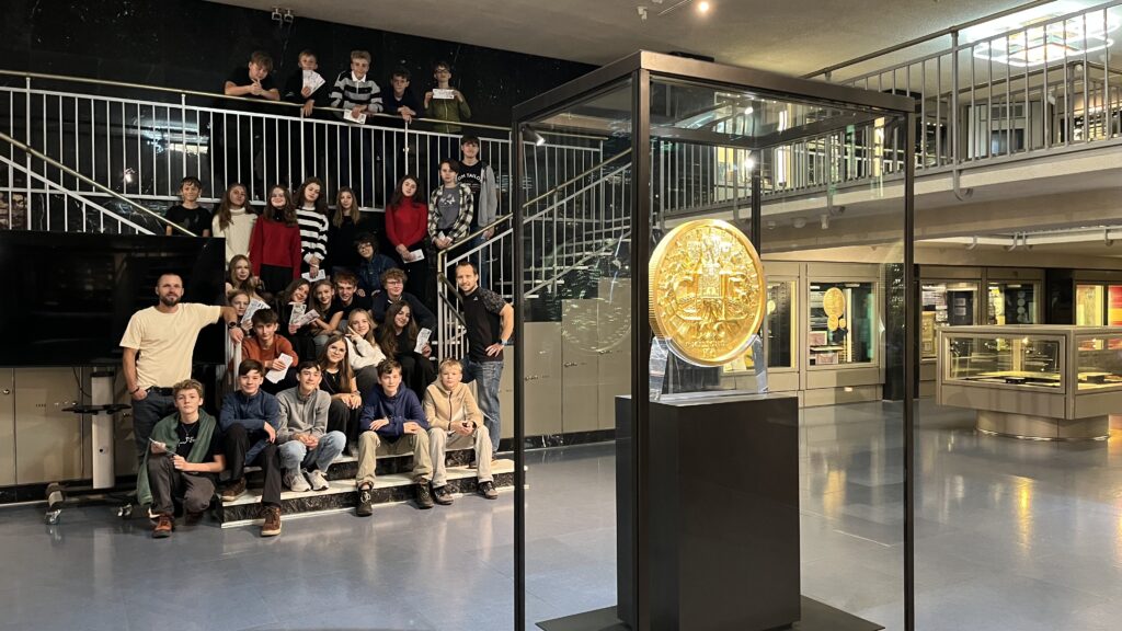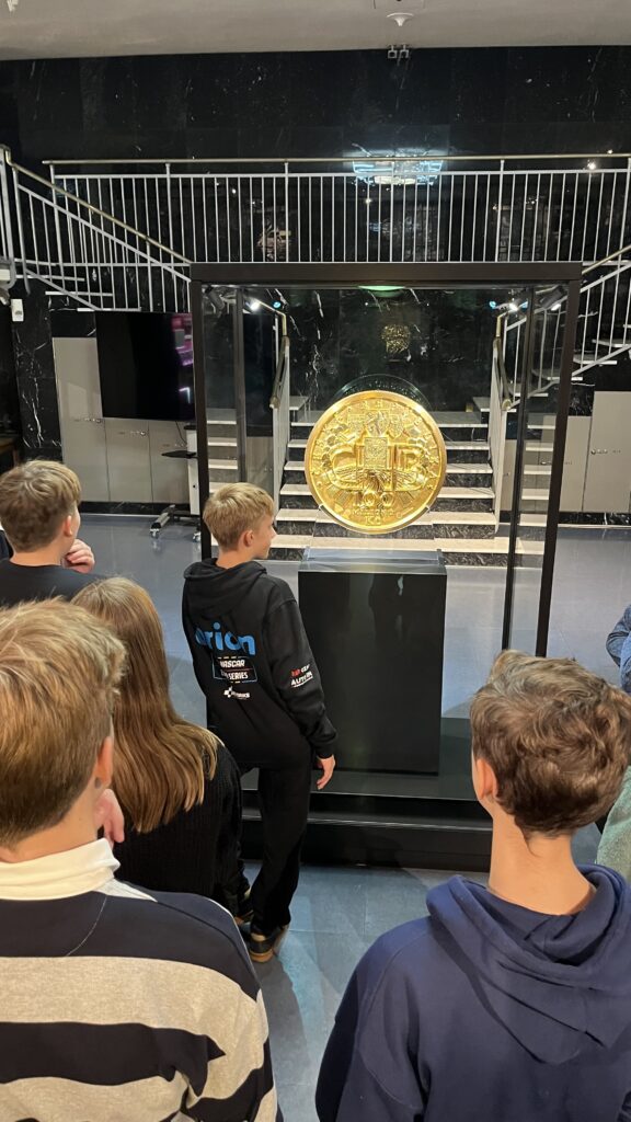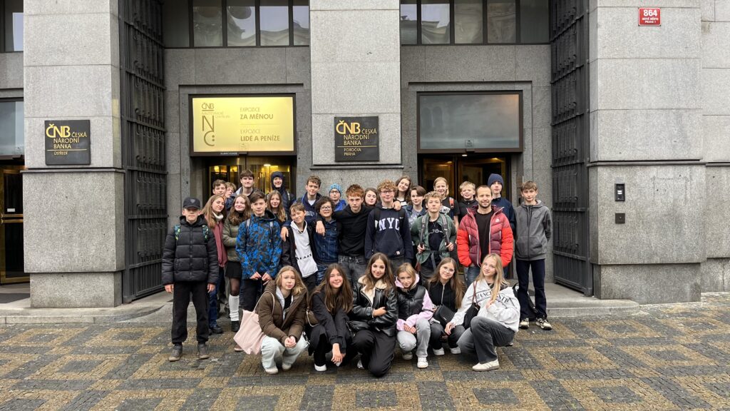 Ve čtvrtek 23. října jsme se třídou vyrazili na exkurzi do České národní banky. Průvodkyně nám pověděla spoustu zajímavostí o tom, jak banka funguje a jak jsou prostory a peníze chráněné. Také jsme se mohli podívat na druhou největší minci na světě. Celou dobu jsme se nacházeli v trezoru, kde jsme si nakonec mohli osahat pravé zlato, které bylo hodně těžké. Celá exkurze byla moc zajímavá a dozvěděli jsme se něco nového o tom, jak fungují peníze v našem státě.